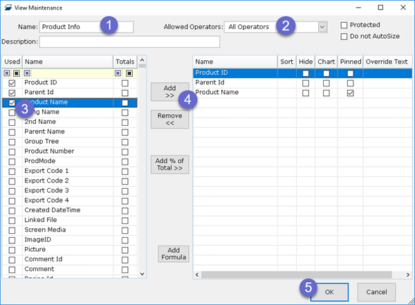 • If the Protected flag is ticked on, it will only allow the Operator who created the View to edit  it