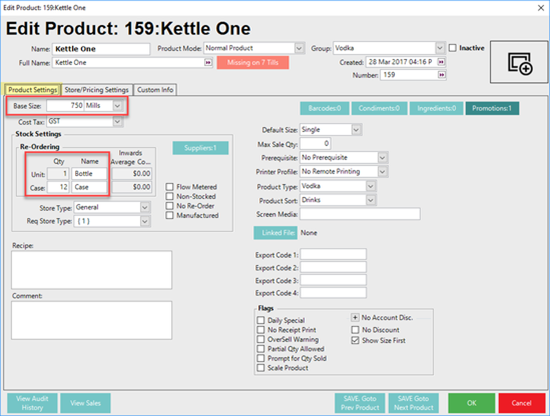 For example, if a bottle of Vodka is added to your Product List, the Base Size should be the volume of the bottle. Accuracy here is essential - is it a 750-milliliter bottle or a full litre? If you purchase both Sizes, add a Product into your System for each; this will making counting Stock MUCH easier.