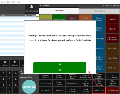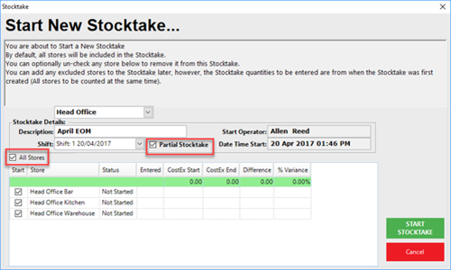 Pro-tip: If a Stocktake isn't initiated in BackOffice, any Stocktake started from a SmartPOS Workstation will default to Partial.