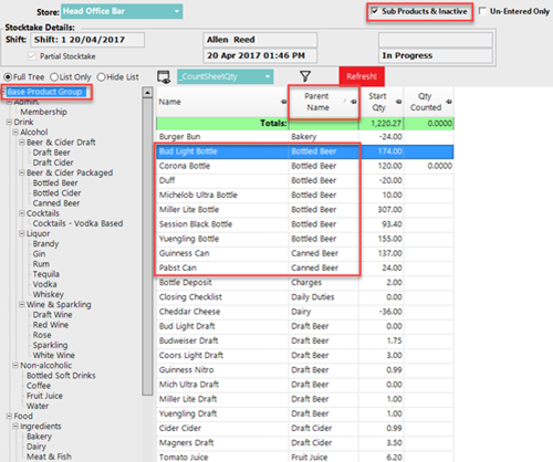 Secondly, select and Print out Count Sheets by Product Groups that will make sense when it comes to actually counting. This will be different for each Organisation, however, something to keep in mind is that it may be easier to have fewer Products on a count sheet rather than having an entire Store's Product List together. For instance, break your Count Sheets down based on how Products may be organized in the Store. Or, in the same sense, order your Count Sheet list by Parent Group Name as that will more than likely carry over into how Products are organized in reality in your location. If your packaged beer & cider is kept in a refrigerator separate from other cold Products, Print a separate Count Sheet for that Product Group.
