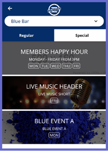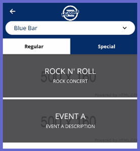 • Special events are occasions that do not occur every week and are a one-time event. For these events customers will need to purchase a ticket to participate. These events could be a large venue concert or trivia nights.
