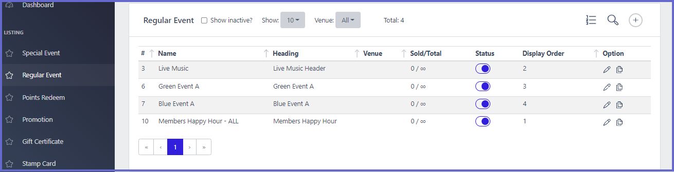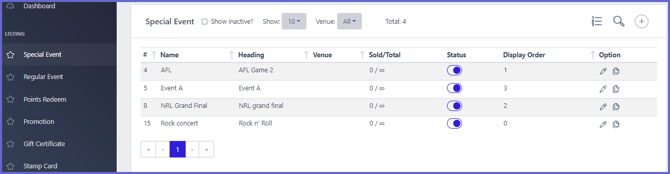 • Regular Events and Special Events will need to be active