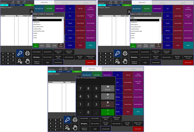 The "Account Select" Sub-Function is designed for searching and selecting an Account, and then attaching it to the Open Table.