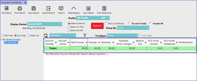 - The Standard View of the Account Summaries Report contains the following data columns by default: