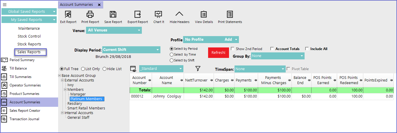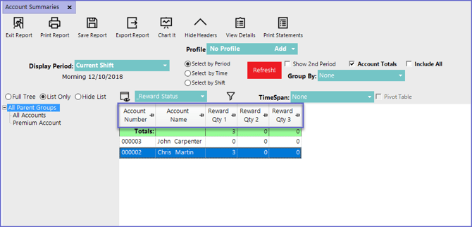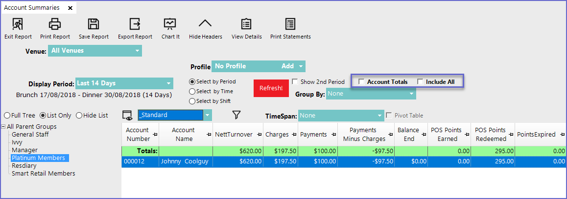 - By double-clicking on an Account Group it will display a breakdown of the Account holders that have been active in the specified time, and their contribution to the overall balance
