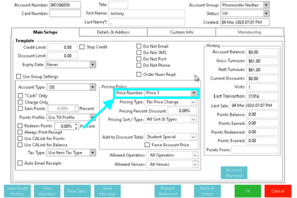 The operator may elect instead to set a preferred special price level for products so that eligible members see that price. Under the Pricing Policy section in the Account Settings in BEPOZ, this is achieved by setting the âPrice Numberâ to the preferred price level so that the relevant price is applied for purchased items at checkout