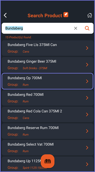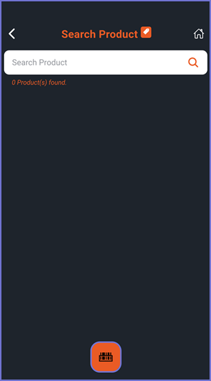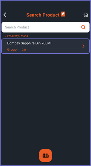Note: For the purpose of showing an example, the Price Check Stock Function is being used, however, the same method will be required for any other Stock Function used in SmartPDE Mobile- From the Search Product screen, click the Barcode Scanner Button; it is the button with the Barcode icon on it