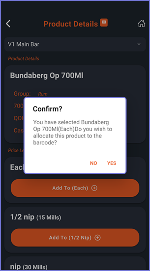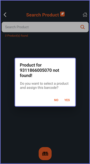- If the barcode is not assigned to a Product, the app prompts the Operator to assign it to a Product