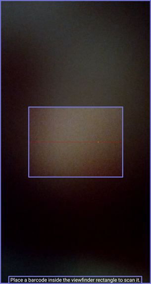 - The system will open the camera of the device and prompt you to place a barcode inside the viewfinder rectangle