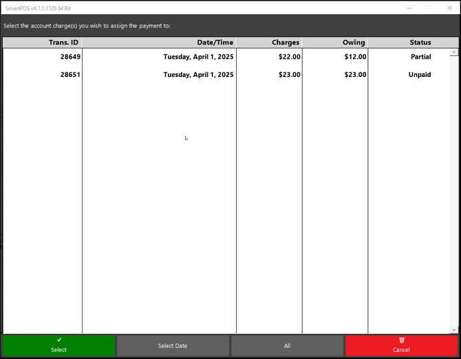 - Assign a payment to a charge from SmartPOS