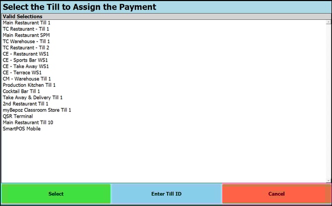 - Select the Till you want to register the payment against