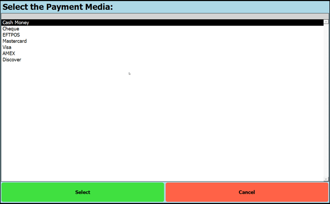 - Select the Payment Media
