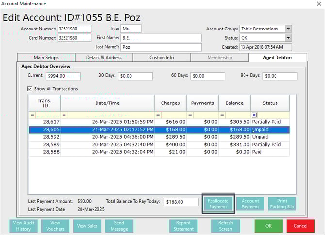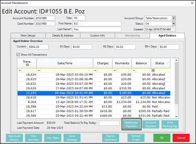 Reallocate A Payment in Backoffice