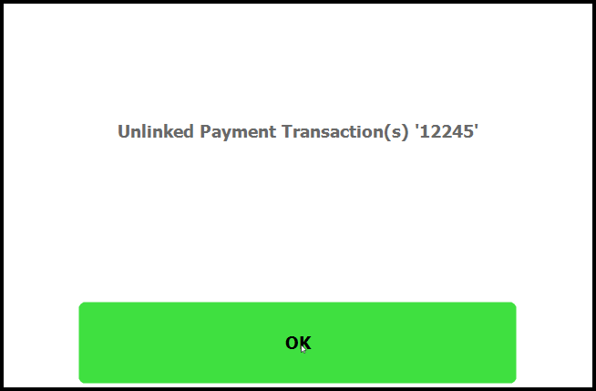 - A confirmation prompt will show the TransactionID and confirmaton it has been unlinked
