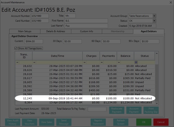 - The payment status will be updated to 'Not Allocated'