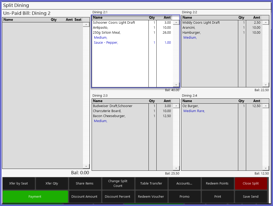 - The Split can now be Tendered to an Account Charge or by Redeeming Points provided that the Account is configured to do so