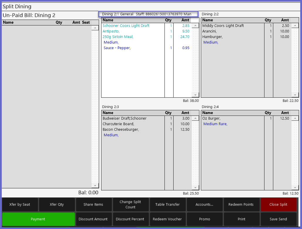 - To access Split Bill Features, the applicable Operator Privileges will need to be enabled