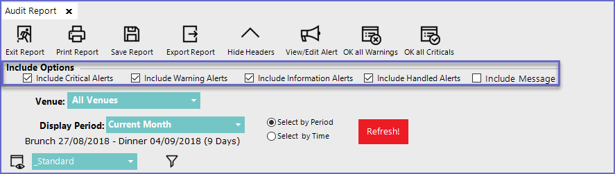 It also gives options to include all the warnings and alerts generated while the audit took place.