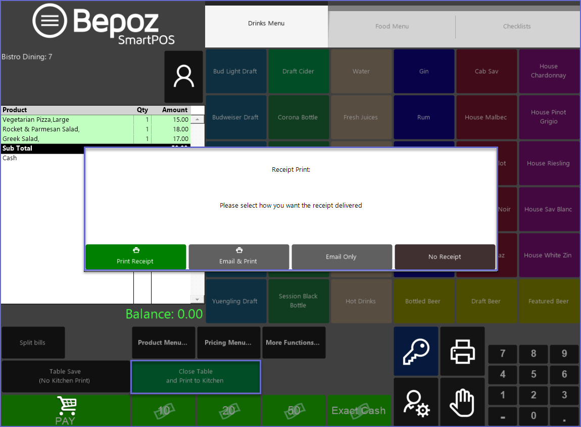 - This will close the Transaction and the docket will be Printed in the kitchen if remote Printing is setup