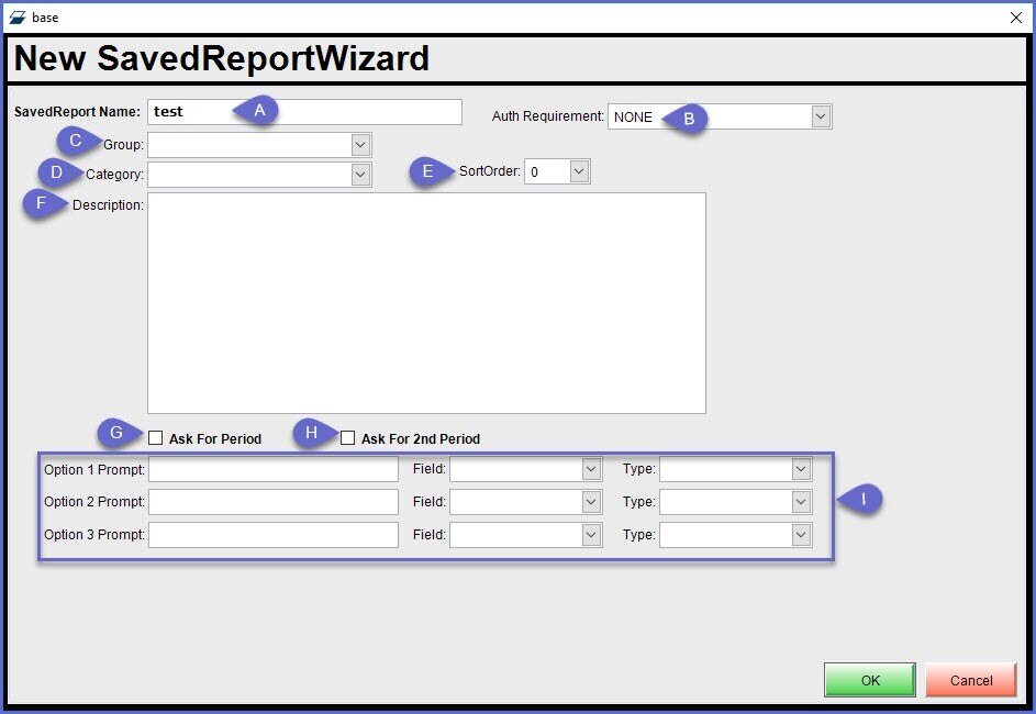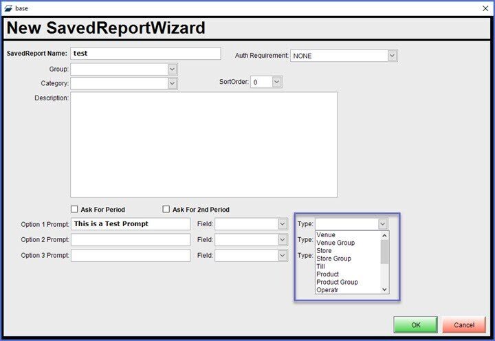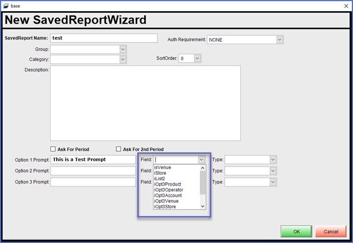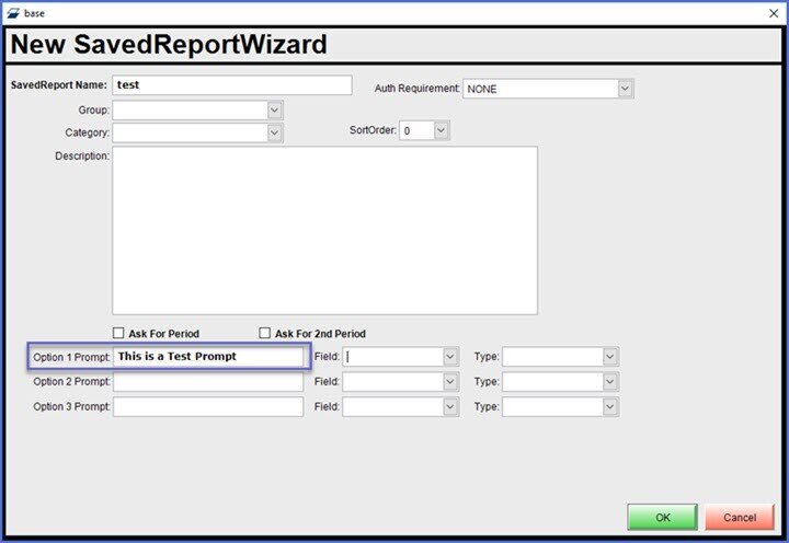 - Bepoz allows for each report to have up to three option prompts as well as the Ask For Period flags