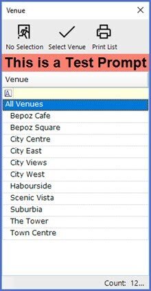 - The options configured in the above images will prompt the Operator to select a Venue prior to the Report being run