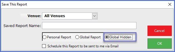 All Saved Reports that an Operator has privileges granted to view will be displayed, whether it had been marked as Global Hidden, Global Report, or Personal Report
