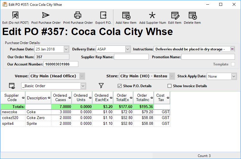 Note: The quantities in the auto P/O can be easily changed before being sent.