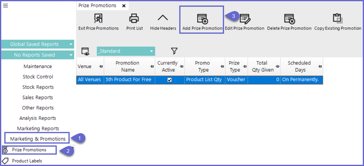 - From the Prize Promotion window, Click Maintenance in the menu sidebar