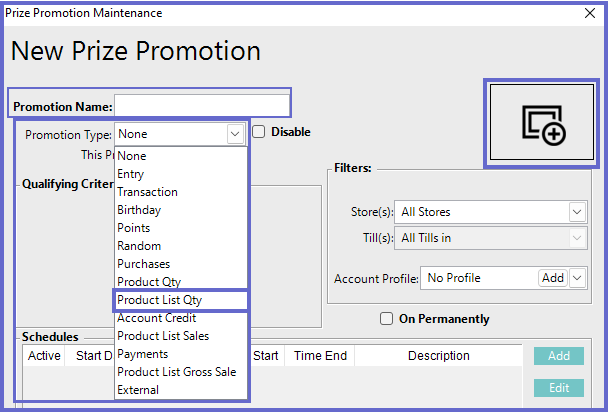 - This field limits which tills the prize promotion will apply to
