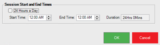 - By default 24 Hours a Day flag will be ON. This will mean the session start time will start when the schedule is created and end in 24 hours