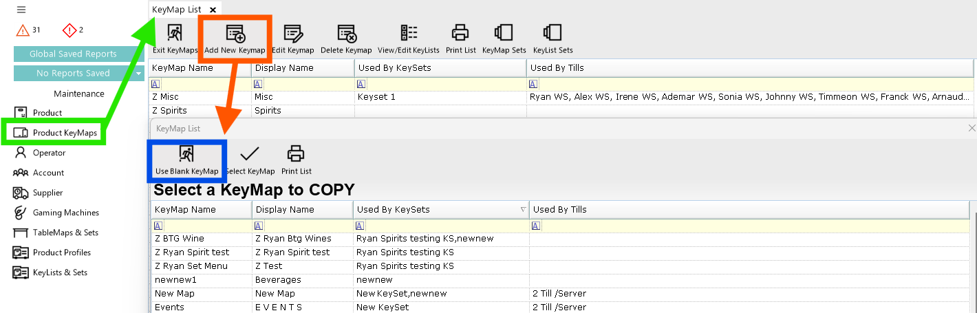 - From the Maintenance menu, select Product KeyMaps