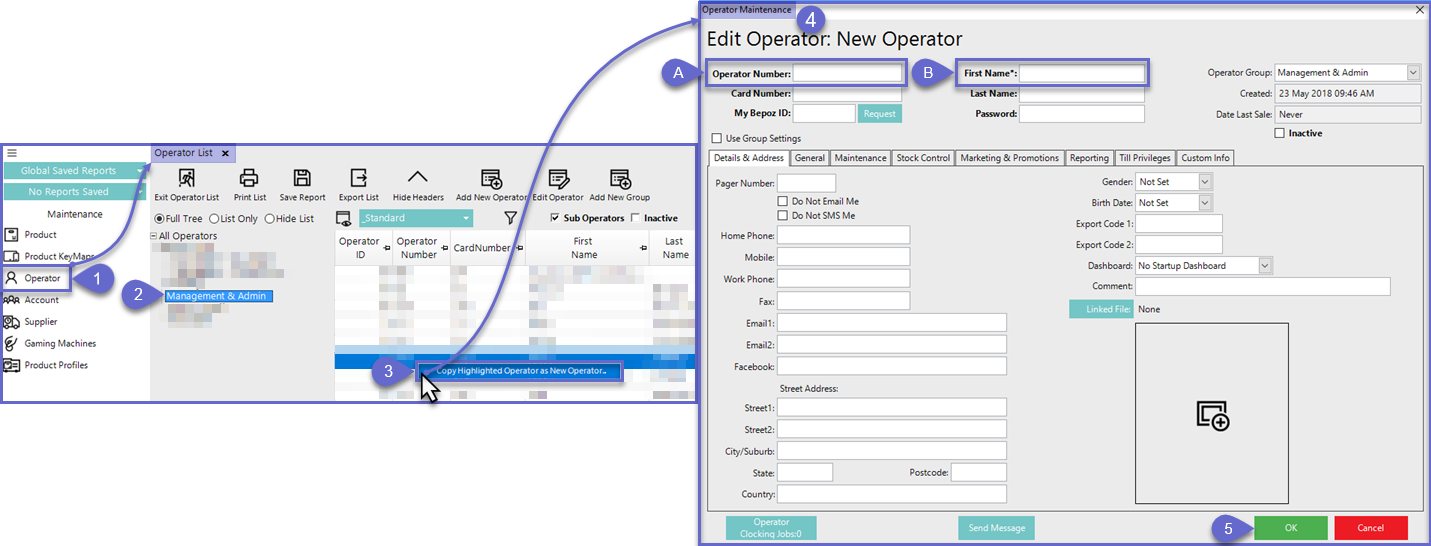 When adding a New Operator in BackOffice, it will always be easiest to copy an existing Operator, whenever possible.