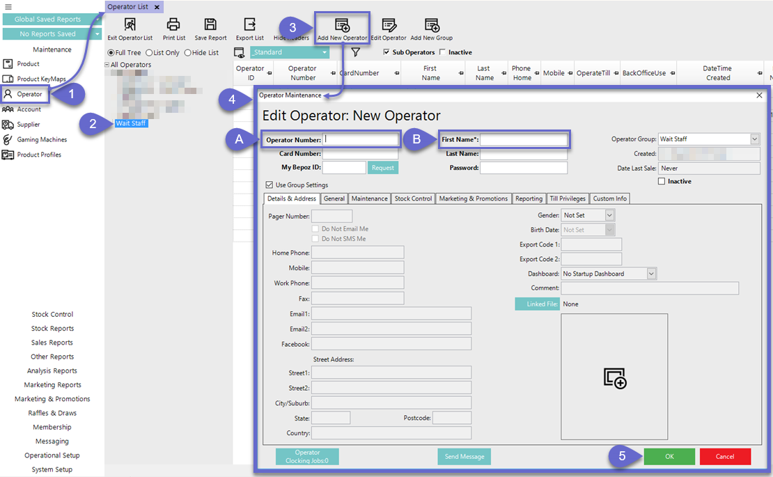 Operators are the users/staff who will need to log in to Bepoz, whether that is at a SmartPOS Till or a BackOffice Workstation.