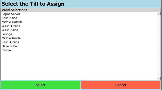 - Select your Till from the List.