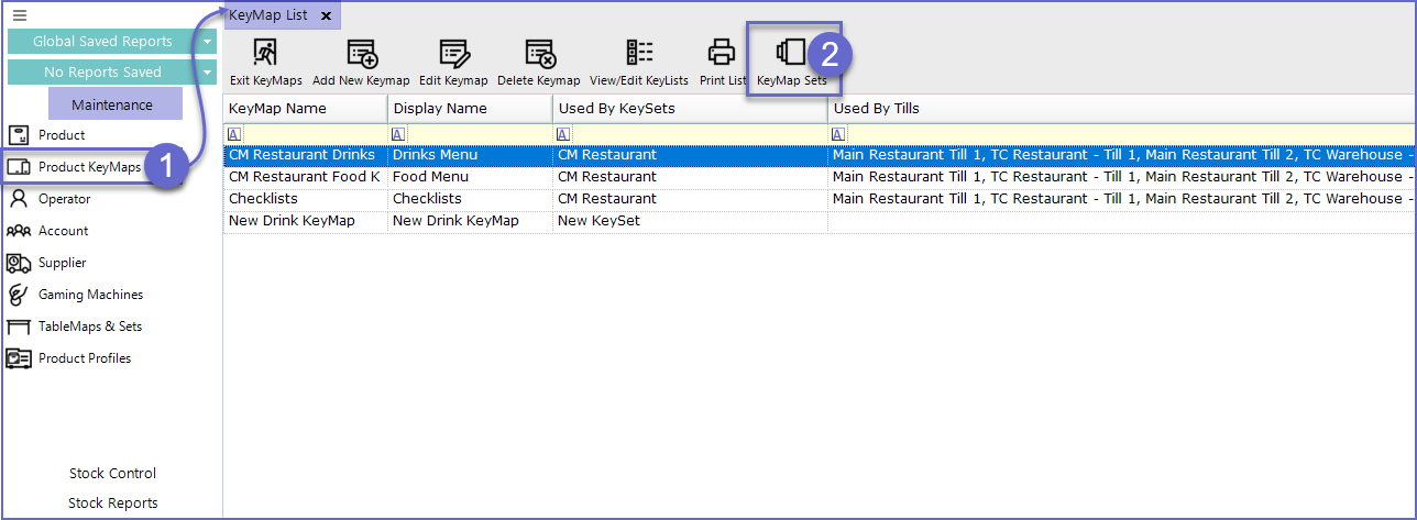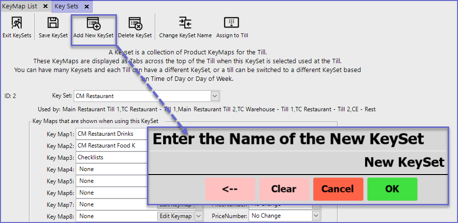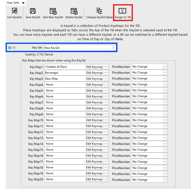 - Once the KeyMaps have been assigned to the KeySet, the KeySet can now be assigned to the workstation and the Till will display the New KeySet