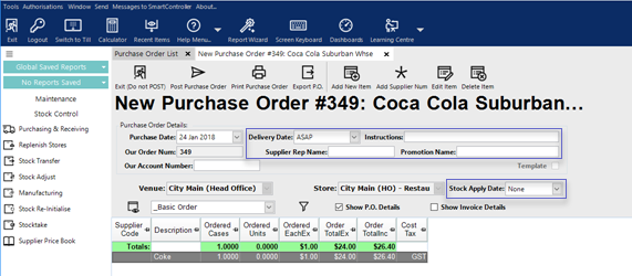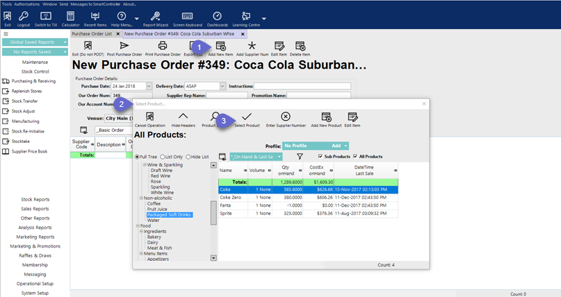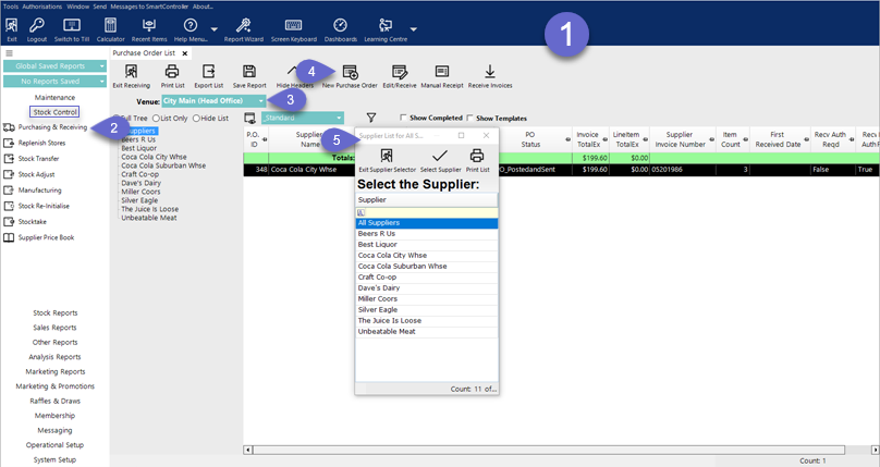 - From the Stock Control menu, select Purchasing and Receiving