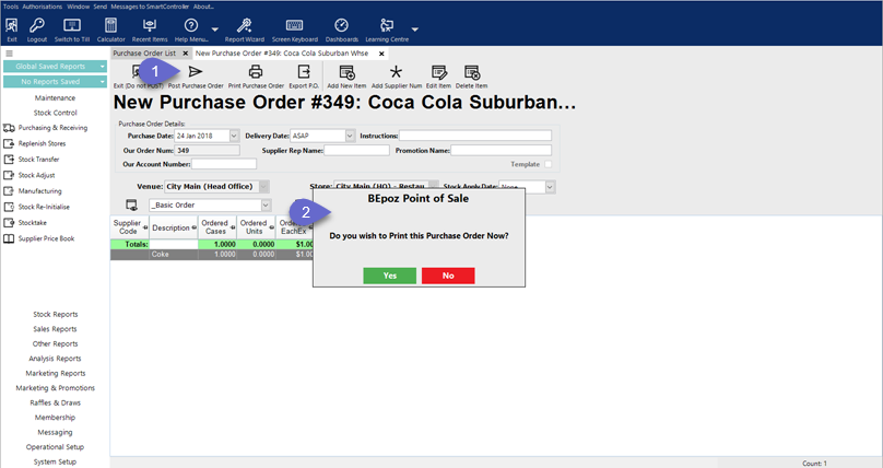 - Click on the Post Purchase Order button