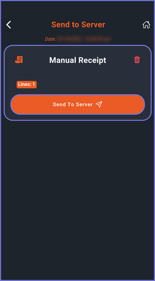 • After a Yes selection, the Manual Receipt is sent to the Send to Server screen