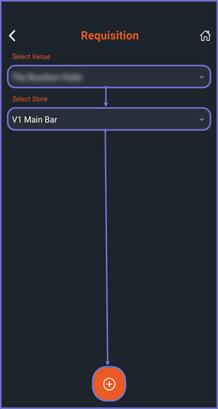 - This will open the Requisition home screen, proceed to select a Venue and Store to create a Requisition for