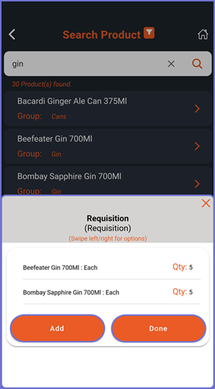 - To view all the products added within the Requisition, click on the 'List' button on the bottom which brings up a modal pop-up window displaying all the products within that Requisition