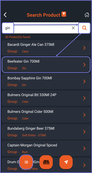 - Proceed and search for a desired product by typing the product name or by using the mobile Barcode Scanner option at the bottom of the screen