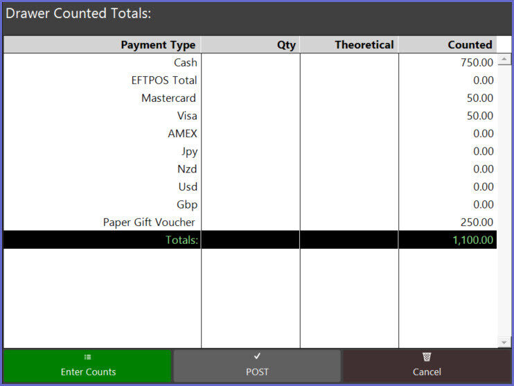 • When an Operator is satisfied with the Counted Amounts that have been entered, they can either Post & Print, or Post