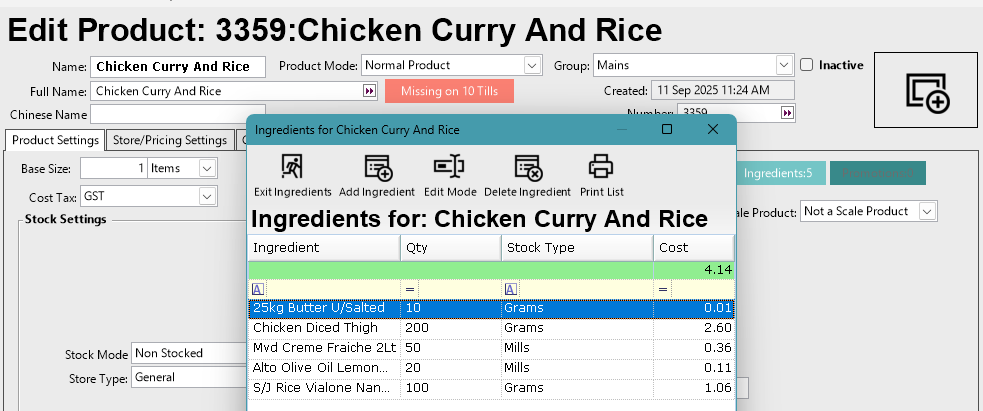 - This can be used for creating Products such as Staff Food, where the ingredients will vary, but will generally have a similar Cost