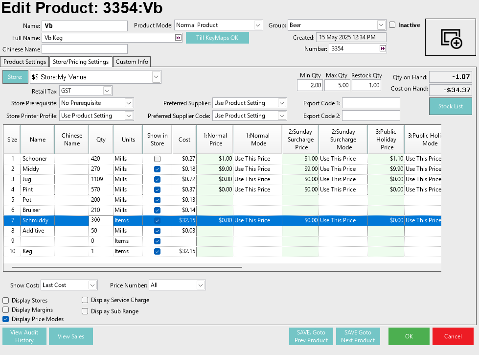 Operator Privileges to Edit Prices and Edit Product Sizes