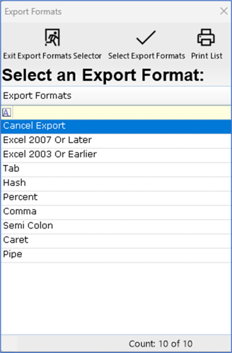 Select an Export Format [Highlight and Select Export Format or Double click one to select]