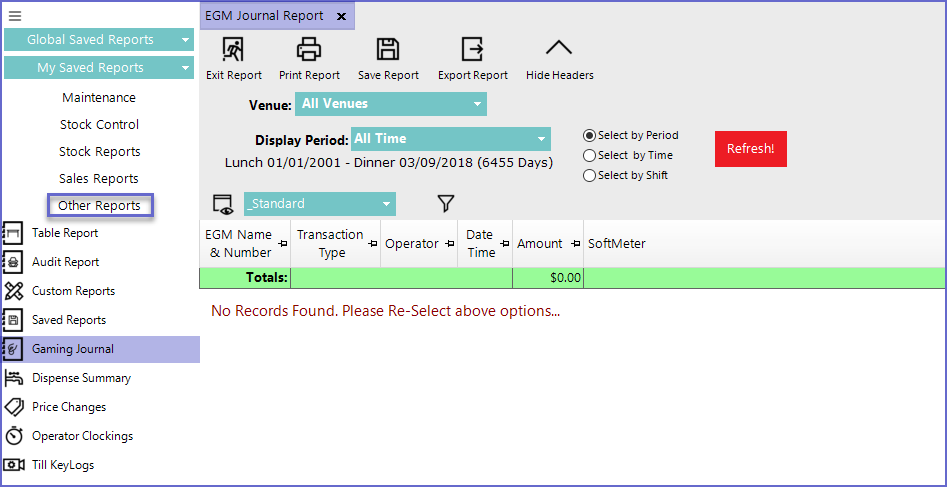 - Select Gaming Journal which will open a new EGM Gaming Journal Window