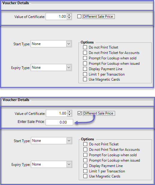 - The Different Sale Price flag allows to sell a Gift Certificate at a desired price value which could be different to the Value of Certificate