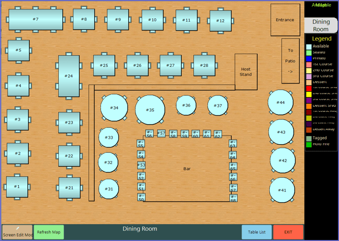 However, if no Graphical Table Map is selected, then the Table Open List will be displayed instead.