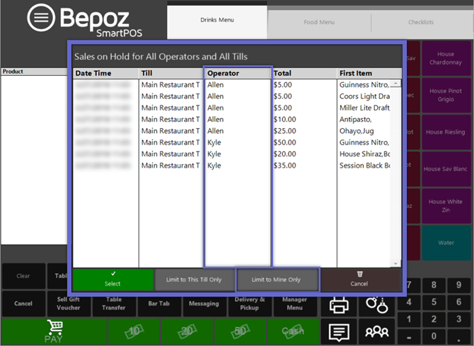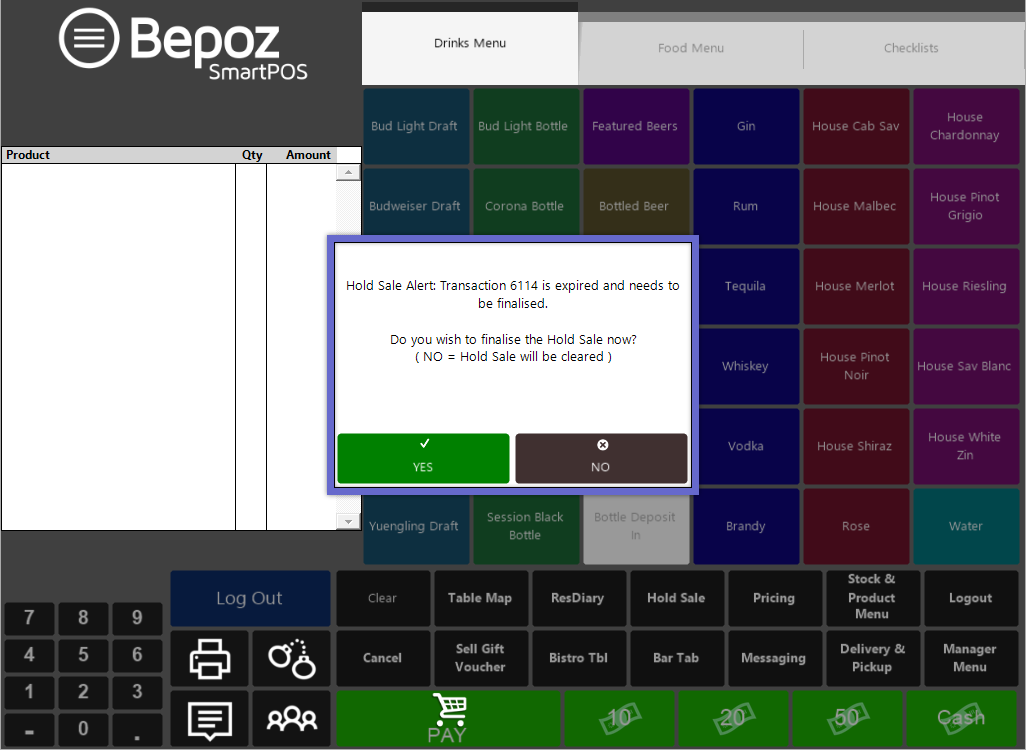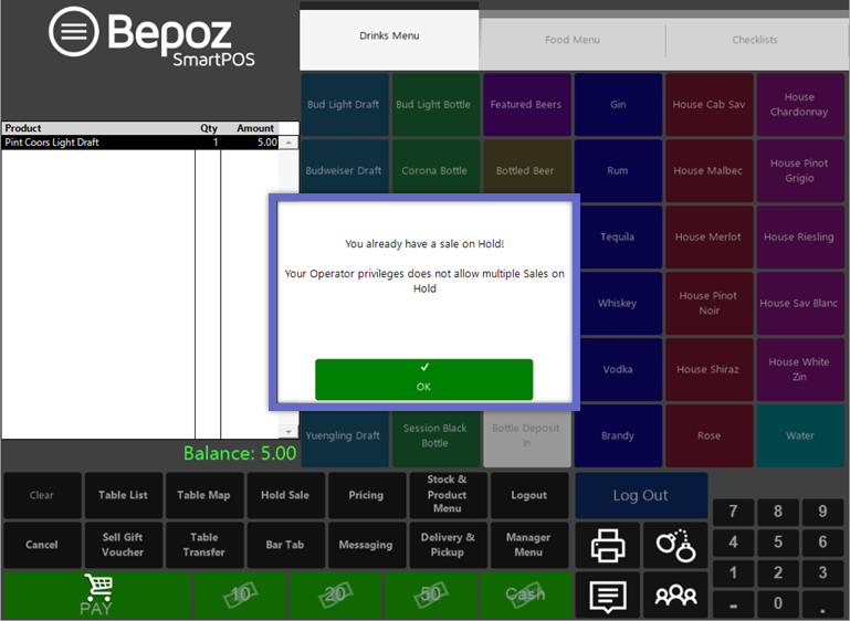 - An Operator can log off from a SmartPOS Workstation with Held Transactions, however, a prompt will appear warning that they have Transactions on Hold