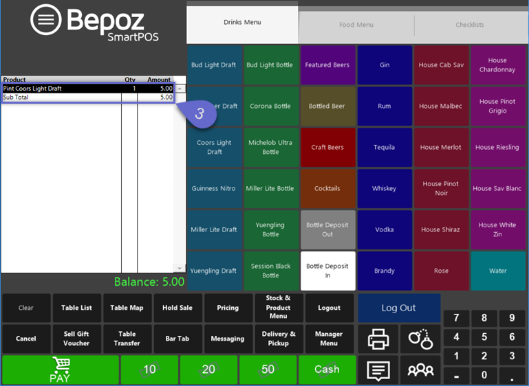 This can be useful in a setting where Transactions are not held on Tables or Tabs. In a busy Bar, Pub, or similar environment this can be used for an Operator to serve multiple customers simultaneously while properly accounting for Stock, without tying up the Workstation or waiting for a Transaction to be Finalized.